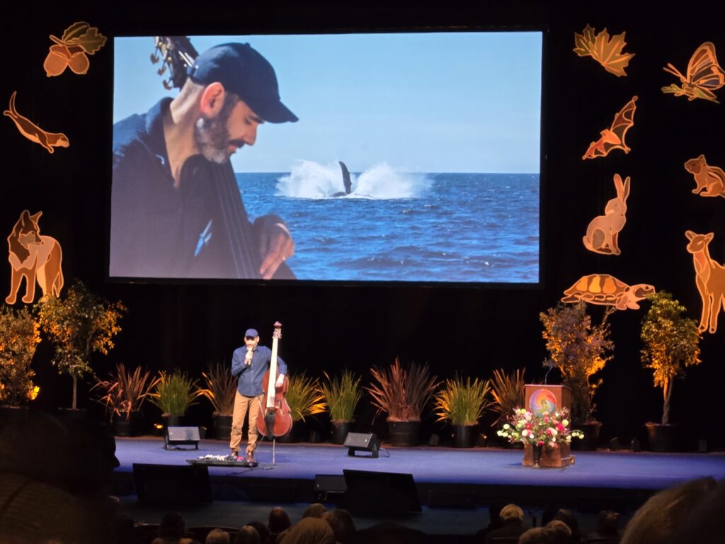 Nowhere is Hawken’s comment more applicable than the Bioneers Conference where I am womaning an information table on behalf of Prescott College. Now in its 37th year, it is an extraordinary gathering attracting thousands of thoughtful, civic-minded people who come to hear from hundreds of inspiring, visionary social justice and sustainability leaders with bold and diverse perspectives that connect people and planet. I found myself in a flood of tears on day one of the conference, listening to composer Garth Stevenson play whale sounds on his bass, Terry Tempest Williams share her vision of “Glorians,” and Saru Jayaraman address the fight to save democracy. The Bioneers Conference shines a spotlight on an extraordinary positive force pulsing through our otherwise negatively charged social and political environment.